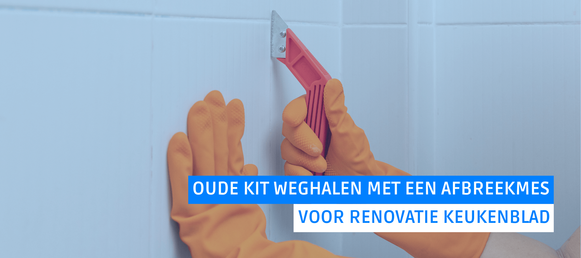 Is je keuken toe aan een renovatie en zit er al een kitnaad tussen je aanrechtblad en de wand? Begin dan met het zorgvuldig verwijderen van de oude kit (Lees blog hierover). Gebruik een stevig en scherp afbreekmes om voorzichtig een stukje van de kitnaad los te snijden. Probeer de kit er rustig uit te trekken. Mocht dit niet lukken, snijd dan de gehele kitnaad uit de voeg.