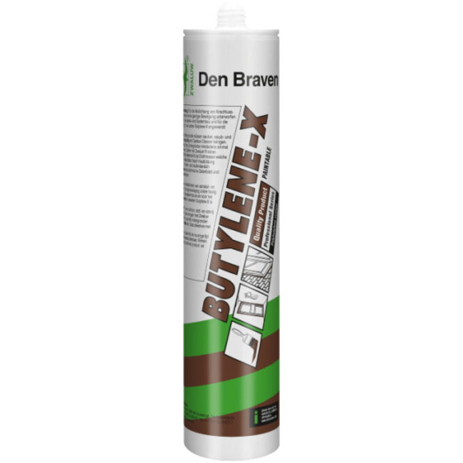 Zwaluw Butylene-X ist ein langlebiger, einkomponentiger Dichtstoff auf Basis von Polybuten und Pflanzenöl. Nach dem Auftragen bildet sich innerhalb von 48 Stunden eine überstreichbare Oberflächenschicht.