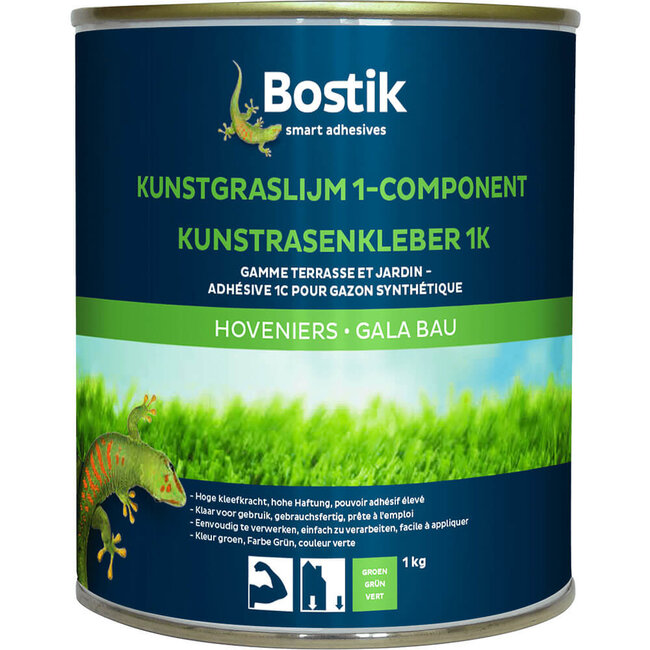 Collage du gazon artificiel et assemblage de sections de gazon artificiel. Convient à la plupart des surfaces, notamment les rubans géotextiles (par exemple, le ruban adhésif Bostik), les chapes en béton et les surfaces en pierre. Téléchargements Fiche technique Bidon de 1 kg (30614621), bidon de 4 kg (30614609) et seau de 15 kg (30614604)