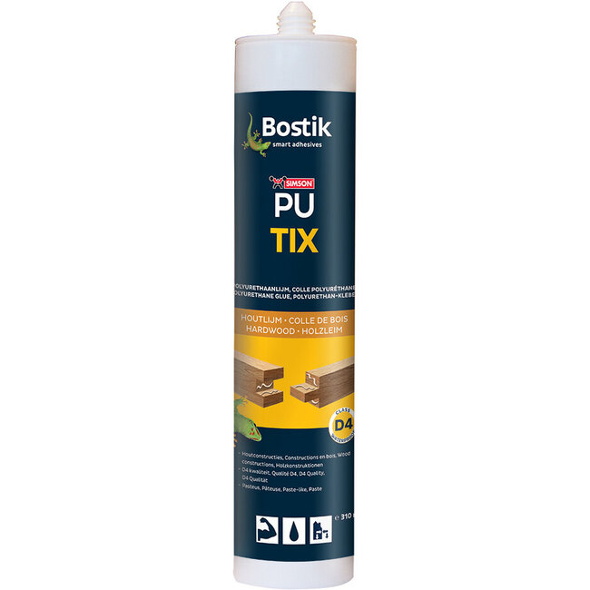 Bostik PU Tix pastalijm is een gebruiksklare, 1-component pasteuze constructielijm op basis van polyurethaan. Watervast volgens EN-204-D4.